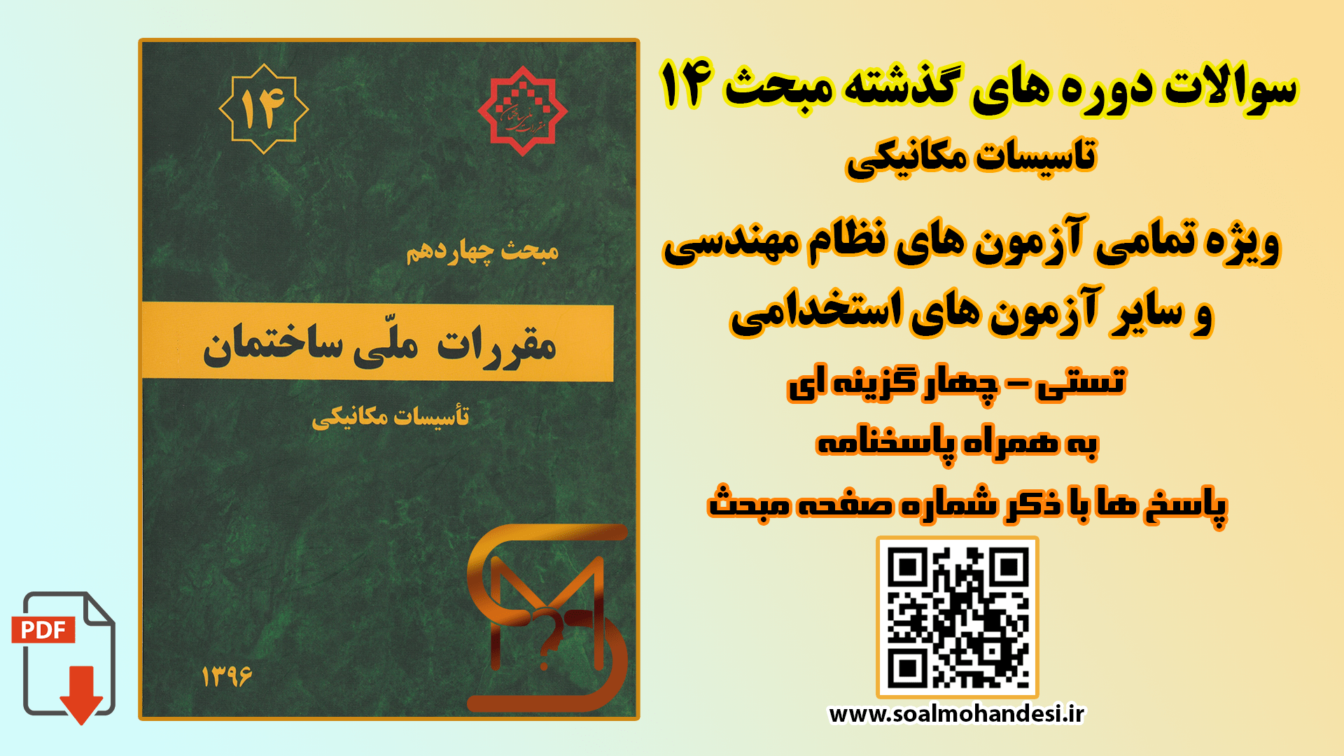 مجموعه سوالات دوره های گذشته مبحث 14 مقررات ملی ساختمان – ویرایش 1396✔️ به همراه پاسخنامه 🔑 آزمون نظام مهندسی می باشد.