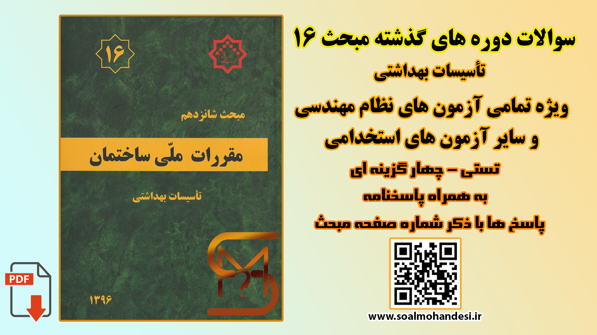 مجموعه سوالات دوره های گذشته مبحث 16 مقررات ملی ساختمان – ویرایش 1396✔️ به همراه پاسخنامه 🔑 آزمون نظام مهندسی می باشد.
