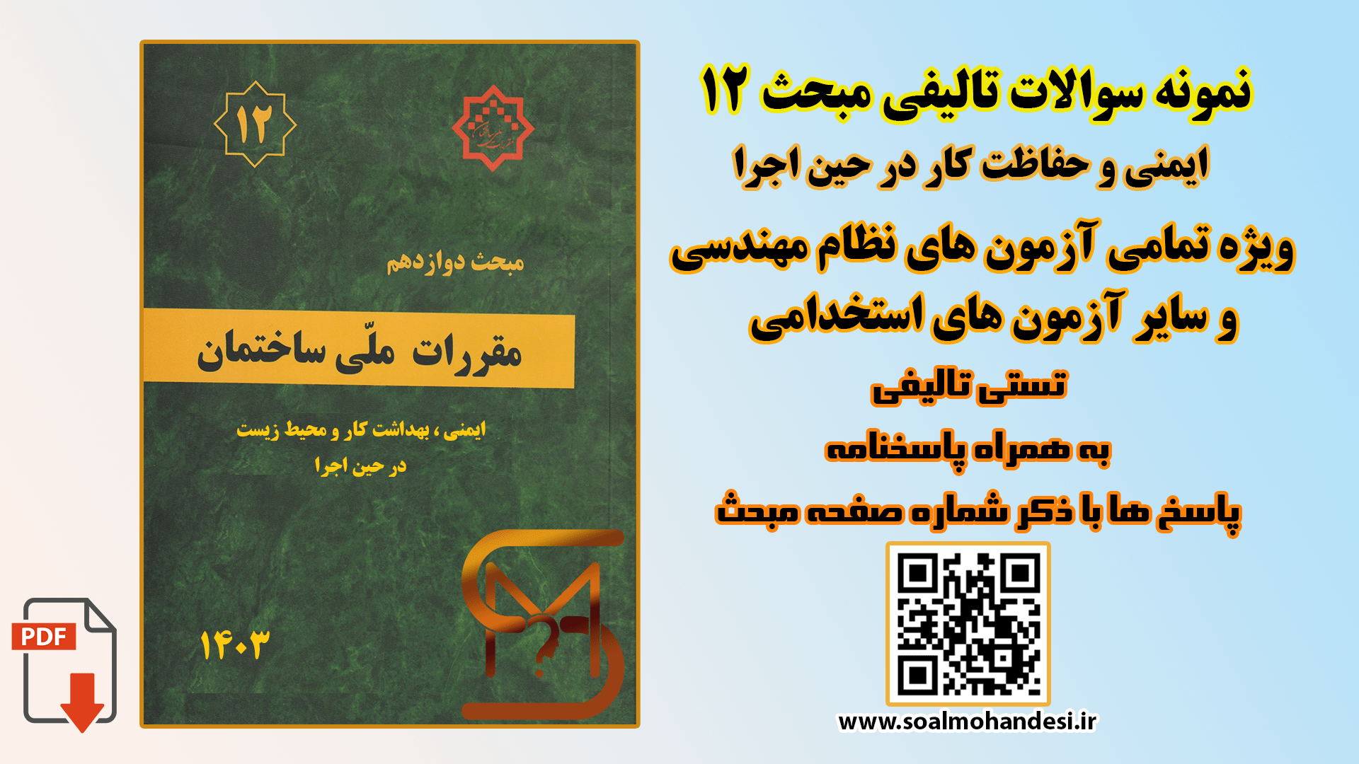 نمونه سوالات تالیفی مبحث 12 مقررات ملی ساختمان – ویرایش 1403✔️ به همراه پاسخنامه 🔑 ویژه آزمون نظام مهندسی می باشد.